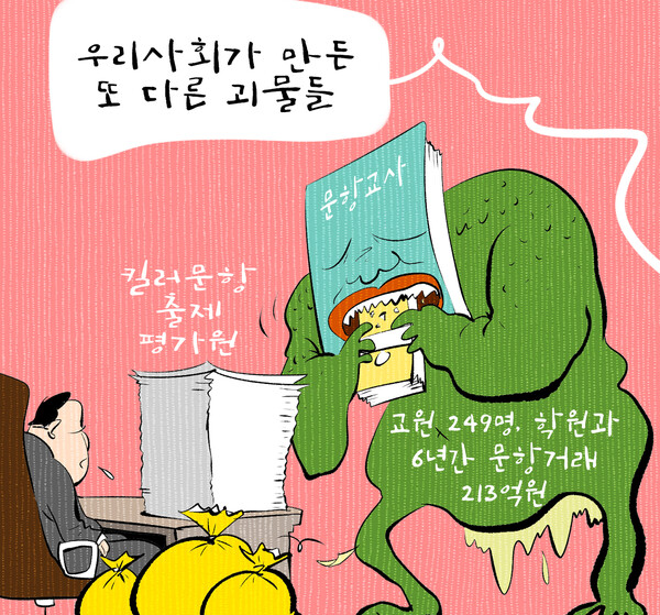 • 킬러문항 출제 평가원: 지나치게 어려운 문제를 출제하는 평가원의 존재가 괴물을 키운 배경임을 시사.
