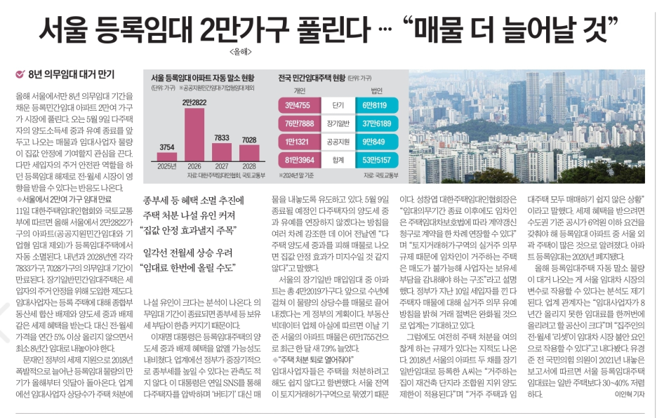 다주택자 '퇴로' 열리자…서울 매물 이틀 만에 2000개 늘었다, 이슬기 기자, 부동산